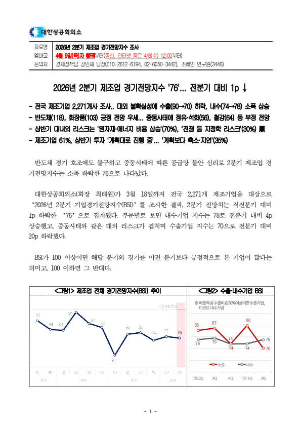 | ‒ | 2026년 2분기 제조업 경기전망지수 조사 보고서 |