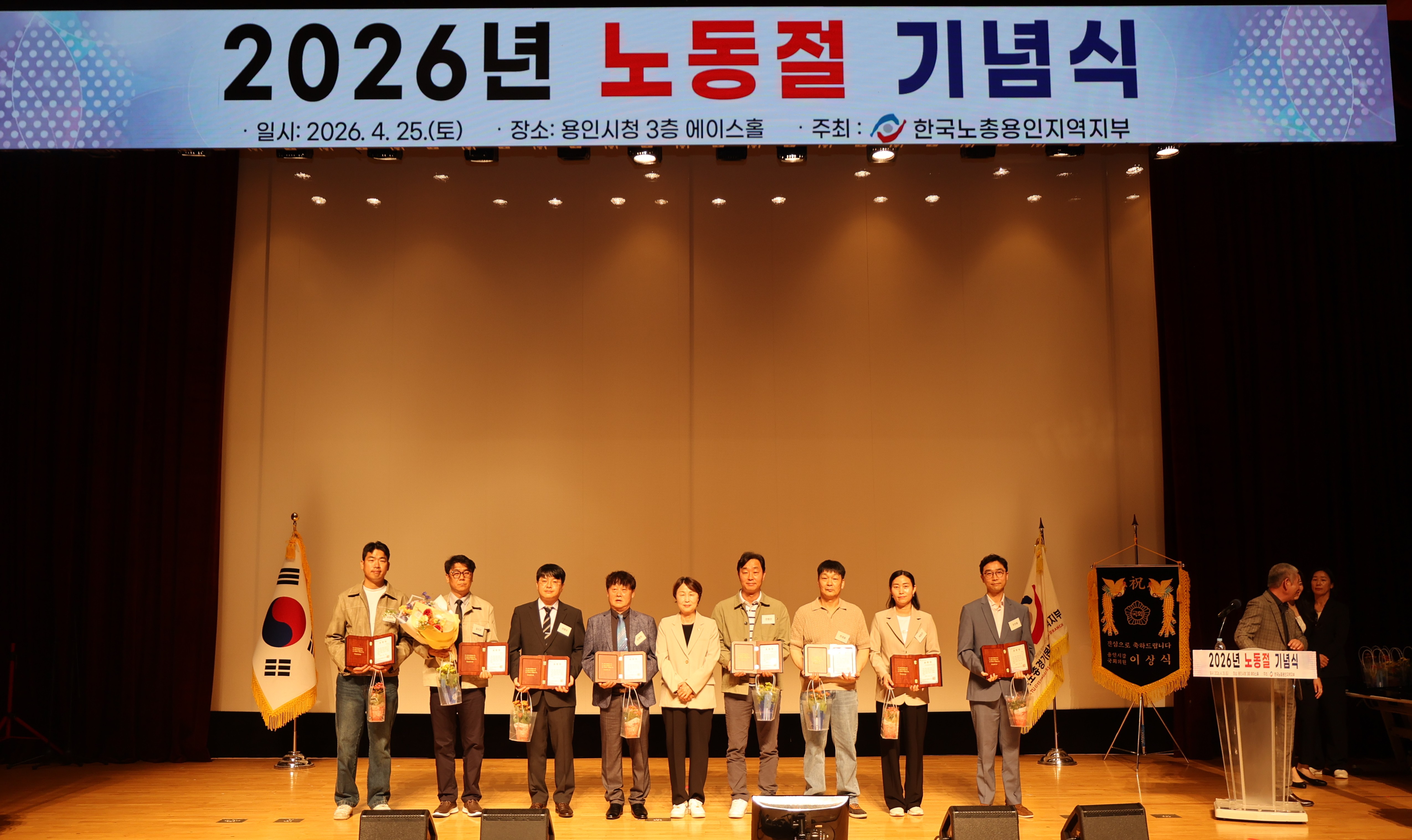 한국노총 용인지역지부 주최 2026년도 노동절 기념식에서, 본 회의소 회원사 근로자분들께서 적극적 노사화합 실천 및 업무 효율성 증대 등의 높으신 공적으로 하기와 같이 표창을 수상하였습니다.